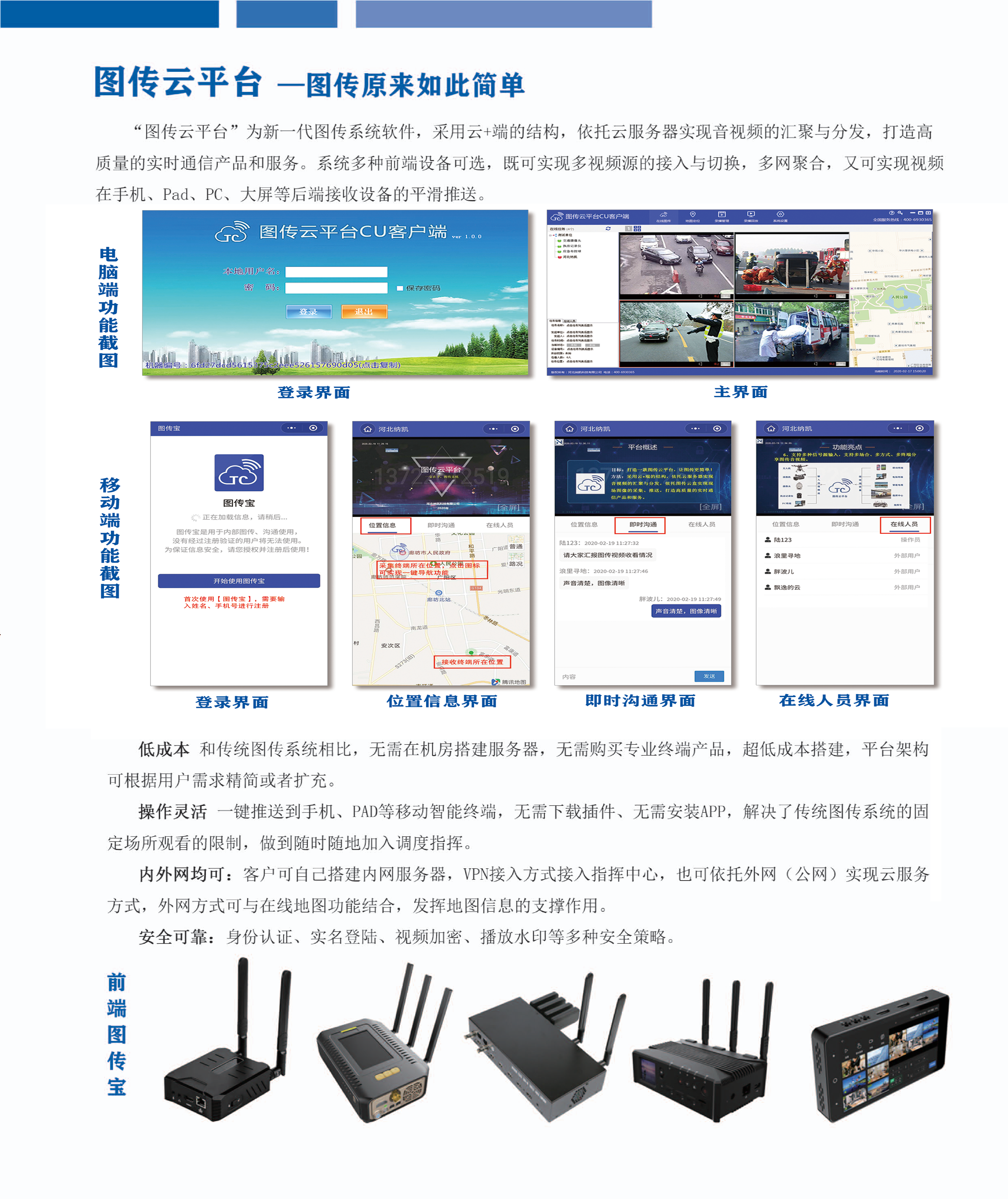 圖傳云平臺是一款云圖傳產(chǎn)品,采用云+端的結(jié)構(gòu),依托云服務(wù)器實現(xiàn)音視頻的匯聚與分發(fā),最終實現(xiàn)音視頻的遠(yuǎn)距離傳輸。圖傳云平臺包括圖傳終端、平臺云服務(wù)器以及客戶端程序。